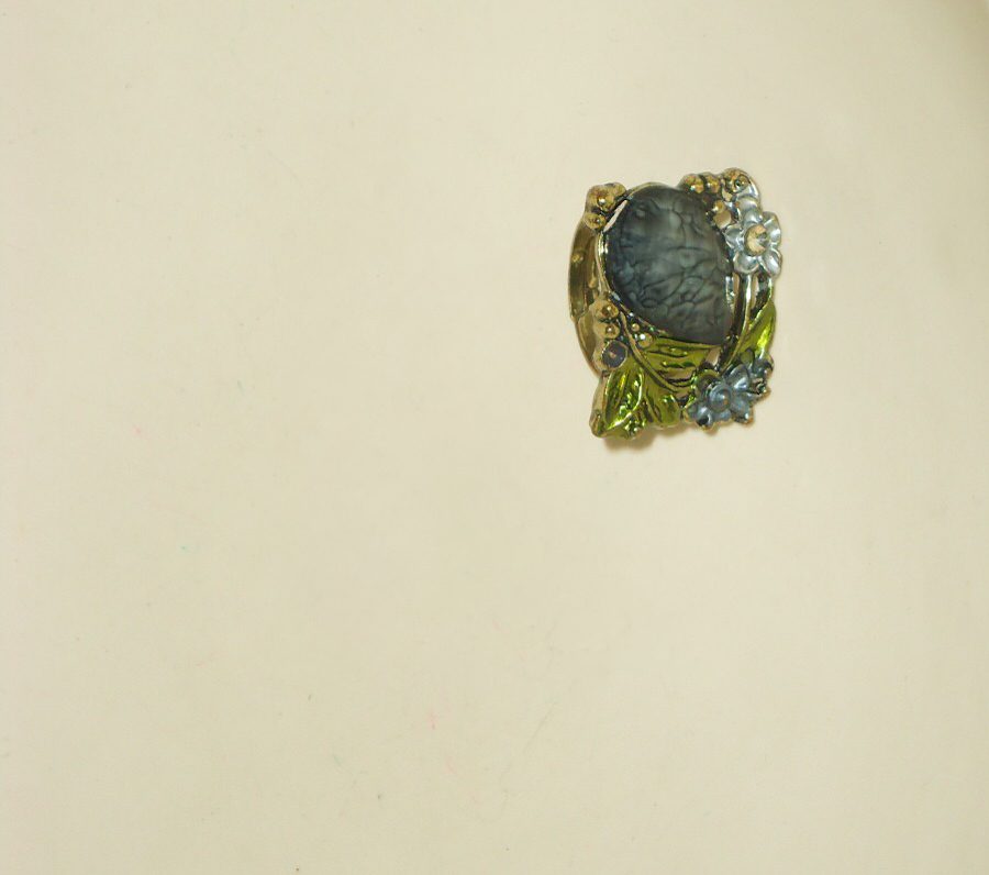 Anel detalhes em flores colorido e pedra cinza, acabamentos dourados e abertura regulável.