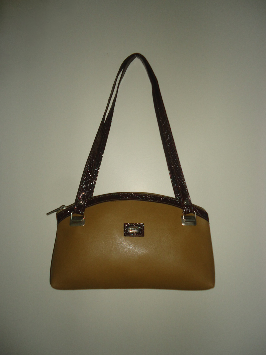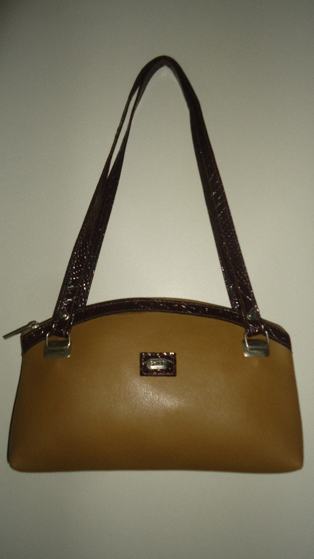 Bolsa vintage de couro pequena de ombro. Acabamentos evernizados tom café e ferragens em prata. Possui zíper e forro interno.