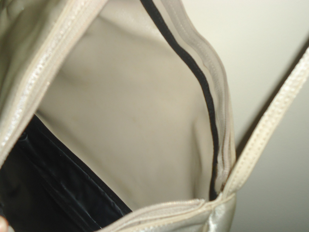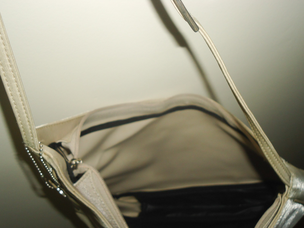Bolsa vintage marca Rose' de Pichey. Modelo tiracolo e lado assimétrico. Tecido impermeável brilhante caqui. Acabamentos em ferragens prata, fivelas na alça, e com pingente da marca. Possui zíper e bolso externo.