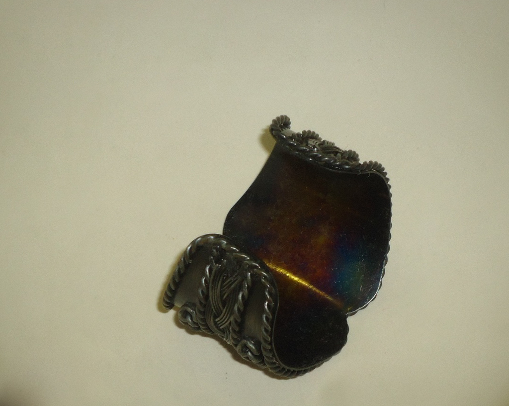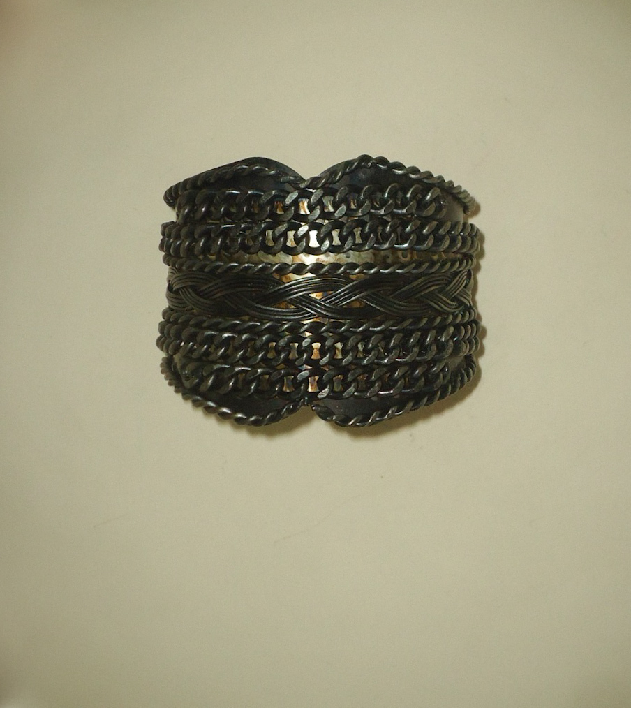 Bracelete vintage de prata legítima envelhecida, com detalhes em corrents e abertura.