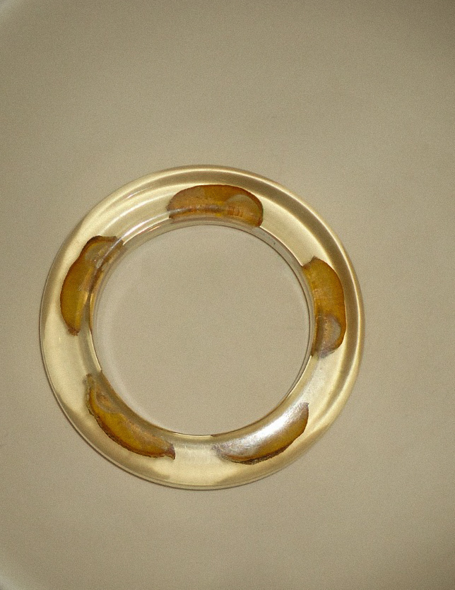 Pulseira max de acrílico transparente, com folhas legítimas.
